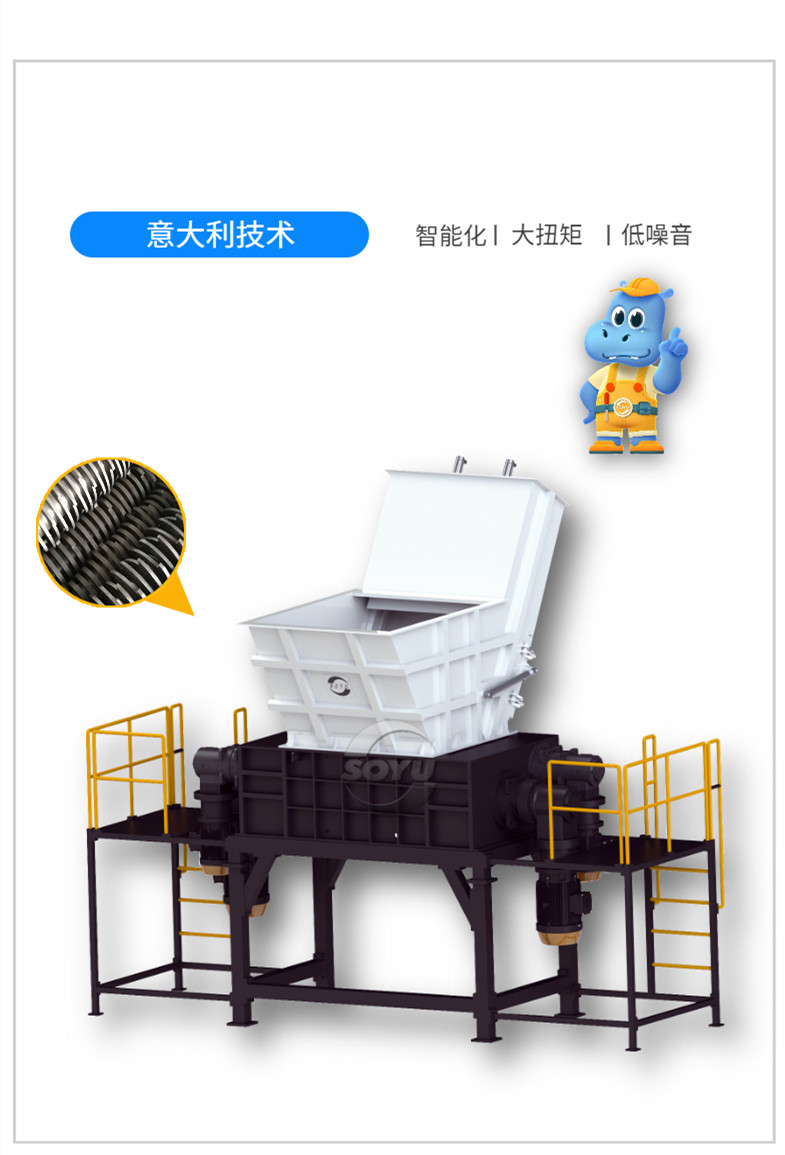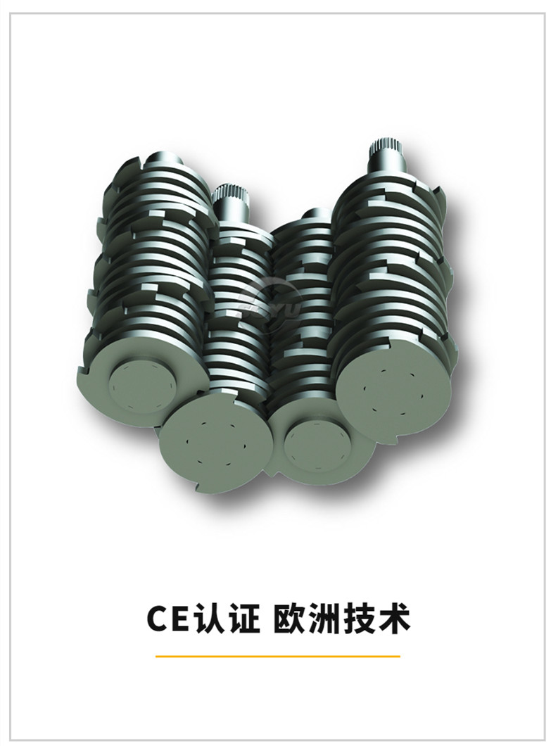 刀片V型螺旋分布,受力更均勻。輔刀具有自動清理主刀功能。兩側(cè)耐磨襯板采用HARDOX進口耐磨鋼板制作而成。