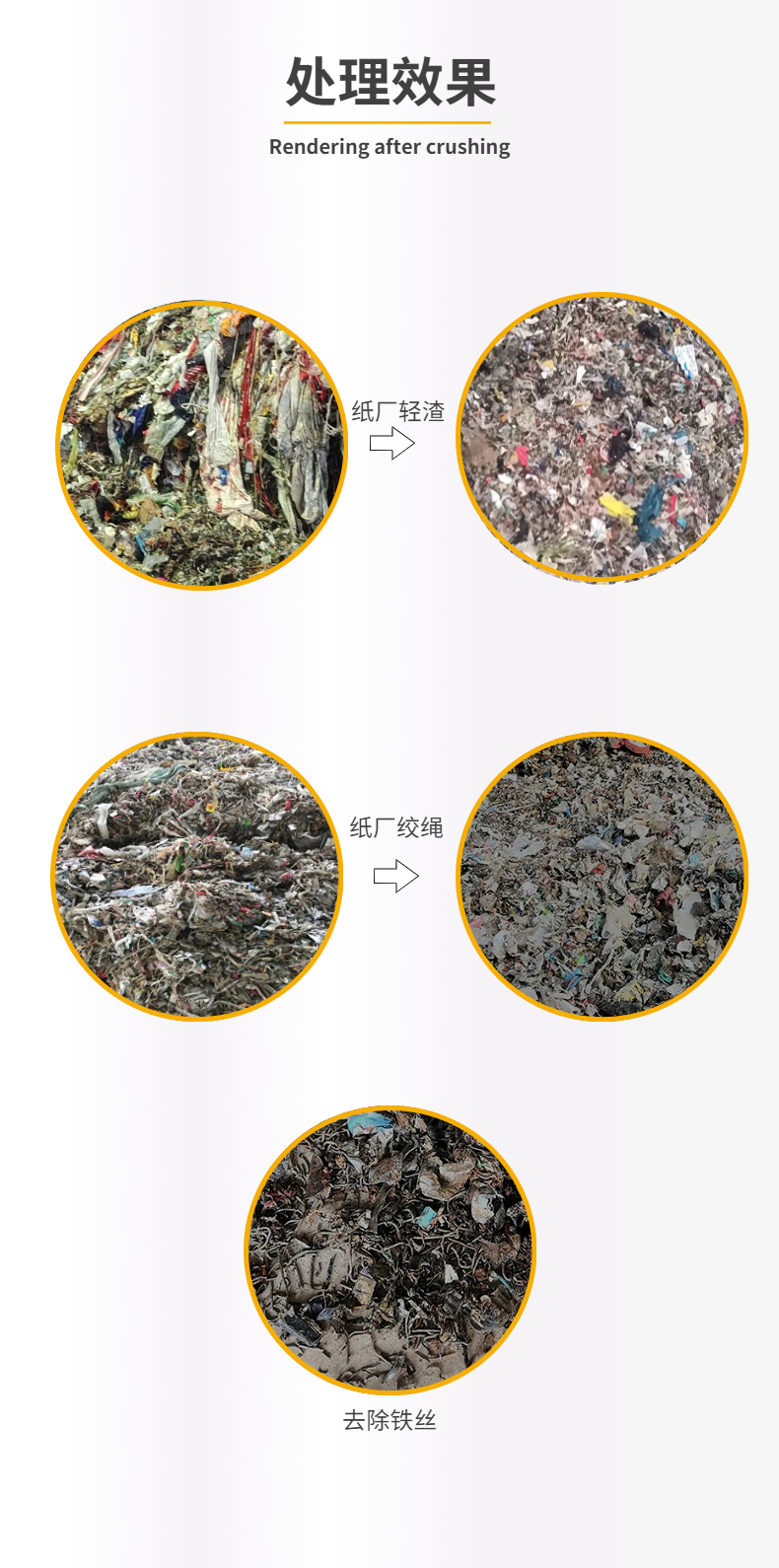 專業(yè)針對紙廠輕渣,絞繩等廢棄物而設(shè)計(jì),整機(jī)技術(shù)來源于歐洲,采用微電腦(PC)自動控制,設(shè)啟動、停止、反轉(zhuǎn)及超載自動反轉(zhuǎn)控制功能,具有低速、大轉(zhuǎn)矩、低噪音等特點(diǎn),軸承座采用對開型式,拆裝換刀容易方便適合撕碎特大、特厚難碎物料。