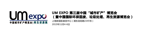 作為產(chǎn)業(yè)最為優(yōu)秀的技術(shù)交流、設(shè)備展示平臺(tái),“UM EXPO 第三屆中國(guó)“城市礦產(chǎn)”博覽會(huì)(暨中國(guó)國(guó)際固廢、垃圾處理、再生資源博覽會(huì))”將于2015年11月4 -6日在上海新國(guó)際博覽中心舉行。