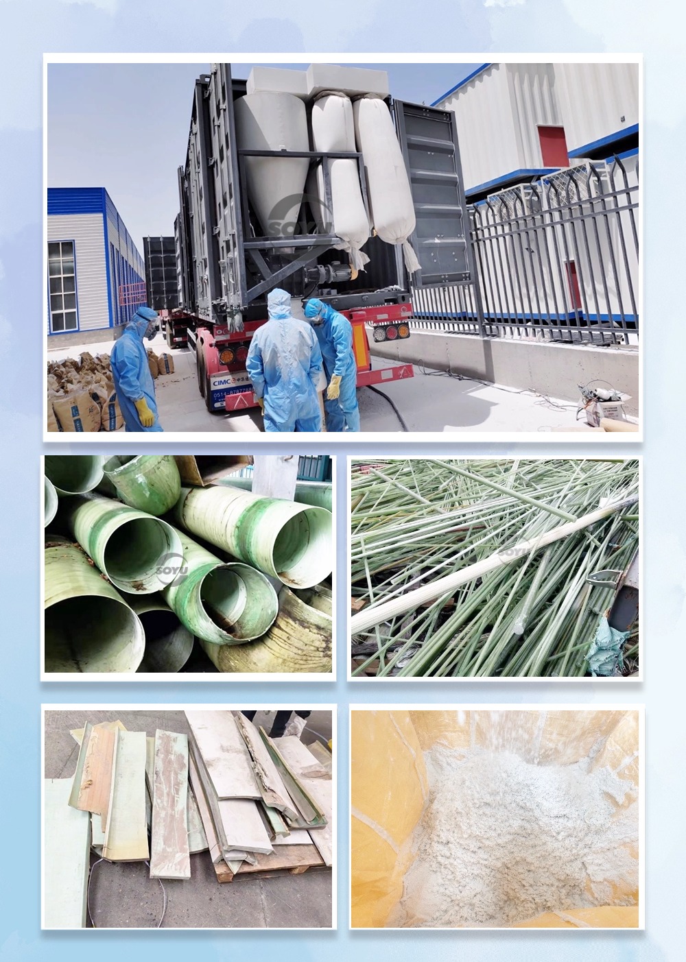 移動(dòng)集裝箱式退役風(fēng)電葉片(玻璃鋼制品)資源化處置系統(tǒng)