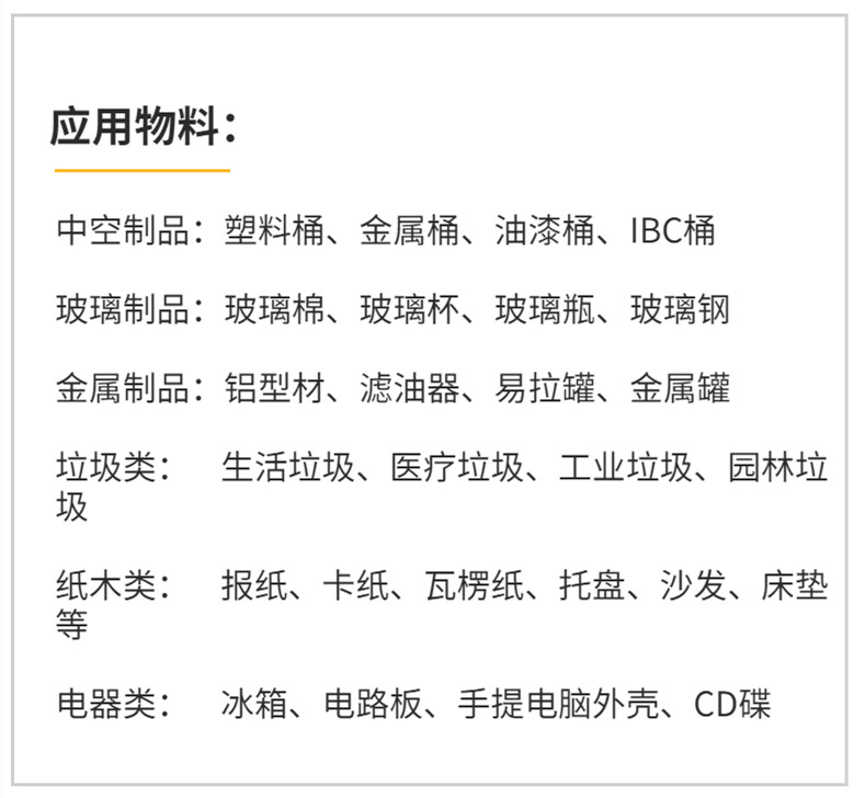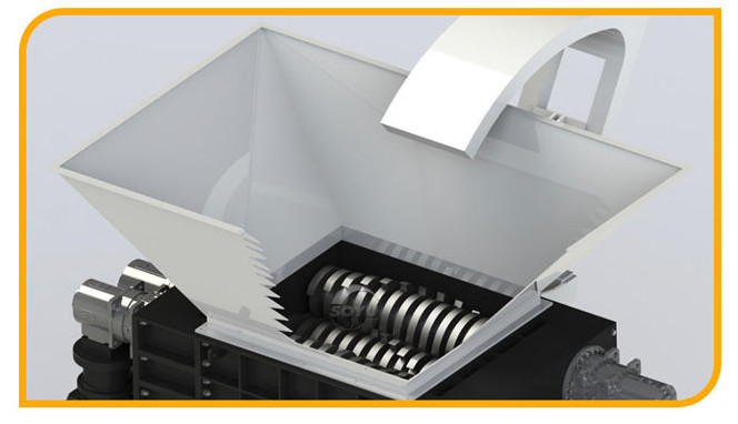 用戶可根據(jù)需要求,在處理大件中空物料時選配液壓壓料裝置,有助于提高處理量。